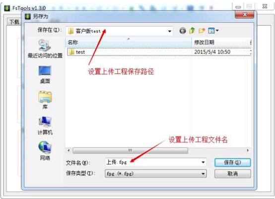 3、選擇工程上傳路徑和保存文件名,點(diǎn)擊”保存