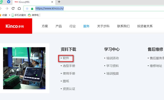 1.打開瀏覽器輸入網址https://www.kinco.cn/